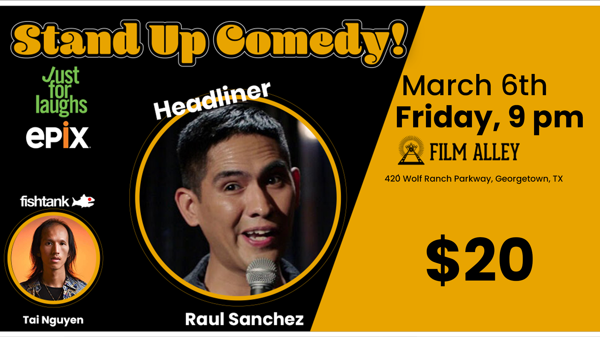 Raul Sanchez began doing stand-up comedy shortly after leaving the U.S. Army where he served combat tours in Iraq and Afghanistan as an airborne infantry soldier. He’s been featured as part of the new faces showcase at Montreal's Just For Laughs Comedy Festival. He’s performed at the Moontower Comedy Festival, the San Francisco international comedy competition, and the Boston Comedy festival amongst others, and won the funniest person in Texas competition. in 2017 Raul released an album called “I’m funnier than this,” which rose to number one on the iTunes charts for two weeks. In late 2018 he had a half-hour special on Epix as part of their unprotected sets series and is currently in the process of writing his next hour.